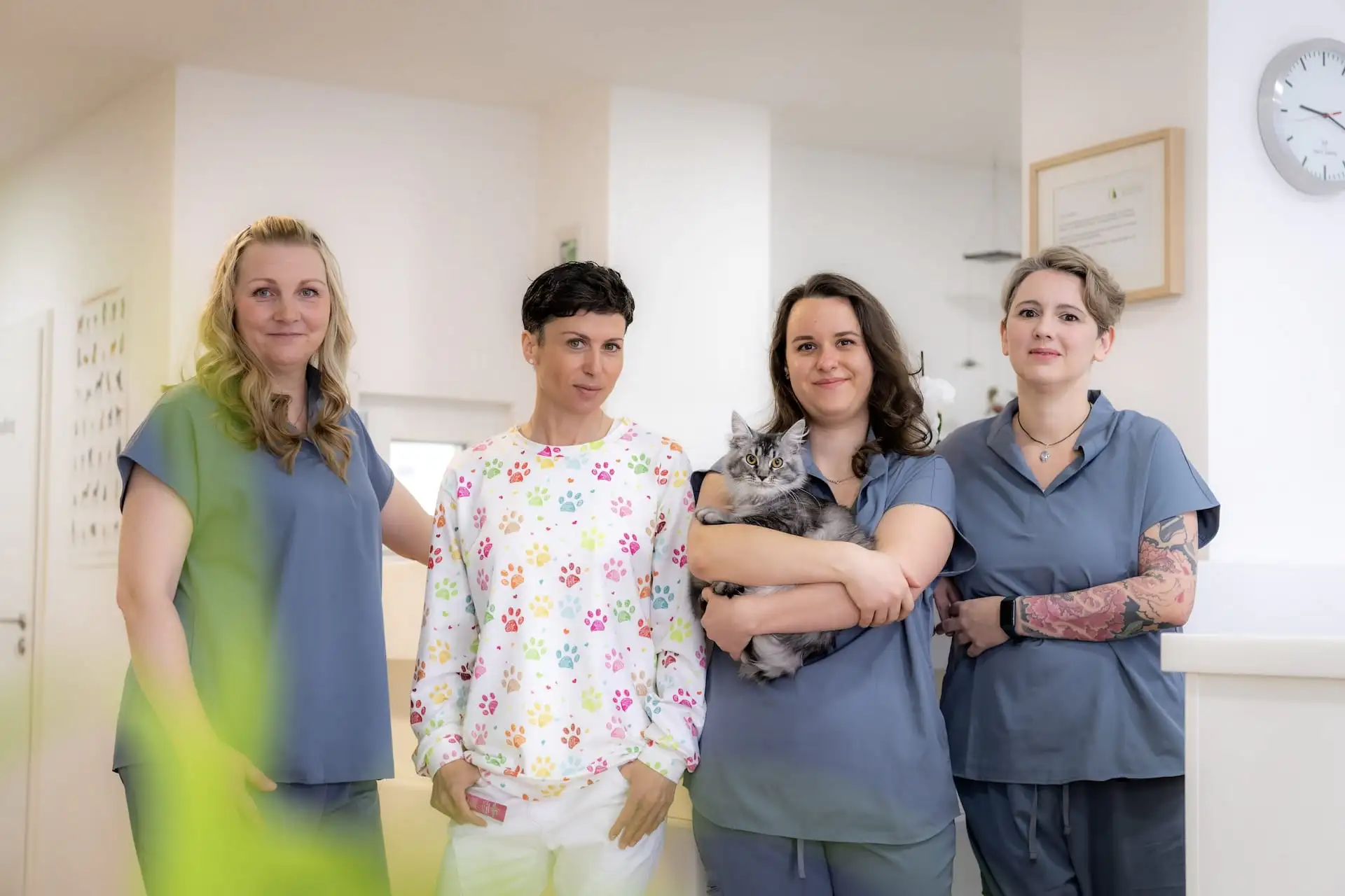 Wir sind zu viert. Das bedeutet für Sie: Ein kleines beständiges Team und immer dieselben Ansprechpartner. Wir kennen die Geschichte Ihres Tieres, seine Eigenheiten und was beim letzten Besuch war. Gute Voraussetzungen, um ein vertrauensvolles Arzt-Patienten-Verhältnis aufzubauen und zu erhalten. So entsteht eine persönliche Betreuung, bei der sich Mensch und Tier wirklich aufgehoben fühlen.